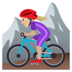 | Цодепоинт | U+1F6B5 1F3FC 200D 2640 FE0F 1F6B5 - 🚵 особа на брдском бициклу 200D - нулте ширине столарије 2640 - ♀ женски знак |